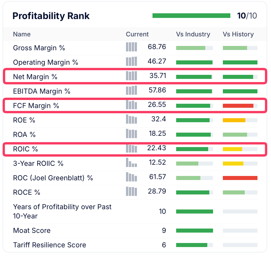 Regardons le tableau de bord de la rentabilité sur GuruFocus :